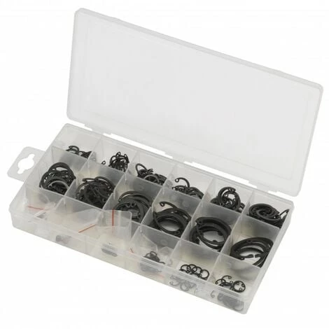 Boite de ± 300 circlips intérieurs en acier au carbone.