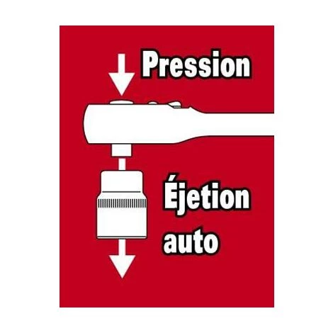 Manche bi-matière antidérapantBouton d’éjection des douillesClé à cliquet réversible 1/4’’ – 72 dents, longueur 140 mm