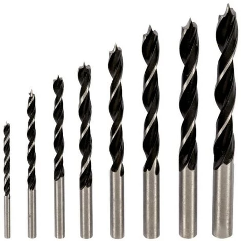 Lots de 8 forets bois en acier au carbone.