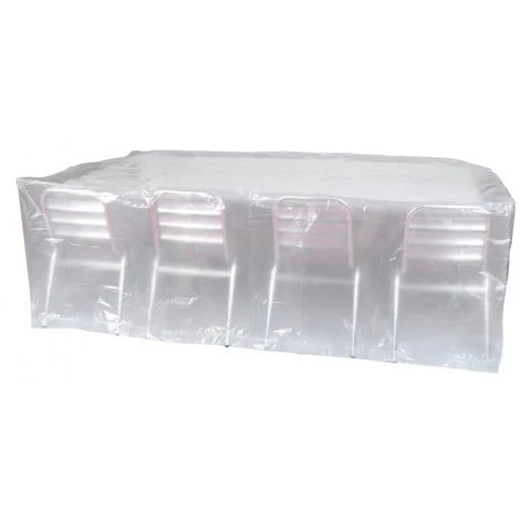Housse « ECOplatinium » 90gr/m2, 220x120xH70cm pour table rectangulaire et chaises..Grâce à un procédé de fabrication extremement novateur, nos housses de protection Eco Platinium pour mobilier de jardin présentent des caractéristiques exceptionnelles :