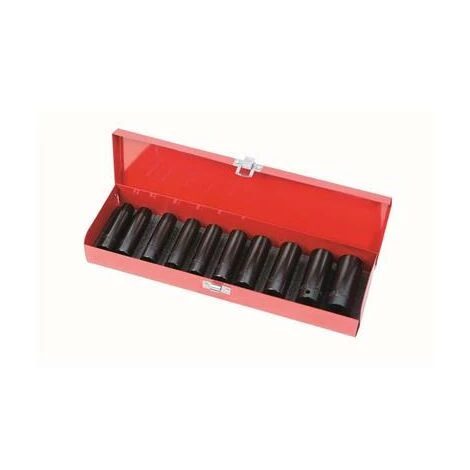 Lot de 10 douilles longueur 78 mm en chrome vanadium 50BV30, dureté HRC 42~48 en coffret métallique.
