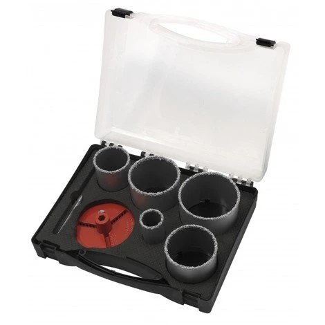 Lot de 5 scies cloche diamantées en malette diam. 33/53/67/73/83 mm ..Valisette de 5 scies cloches diamantées.