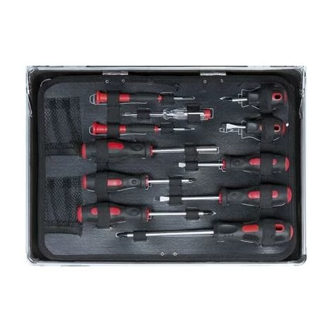 – 4 tournevis plats : 38 mm, 75 mm, 100 mm, 160 mm en acier chromé