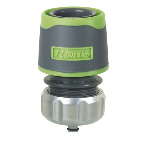 Ce raccord rapide AquaStop tri-matière plastique et métal est muni d’un revêtement Soft-Touch. Il est compatible avec les tuyaux de diamètre 12 à 15 mm (1/2 » – 5/8 »).