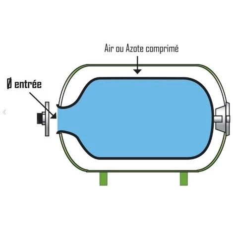 Cette vessie est conçu pour les surpresseurs. Elle est en butyle et EPDM (Éthylène Propylène Diène Monomère). Le diamètre d’entrée est de 100 mm et sa quantité est de 100 Litres.